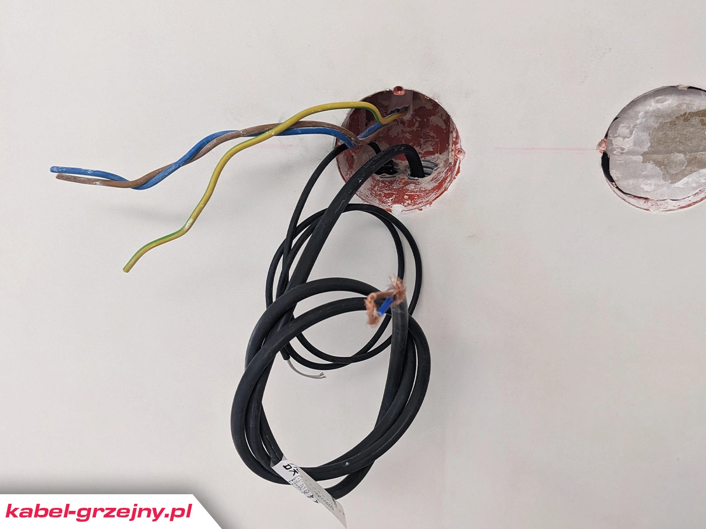 Rozwiązaniem jest zastosowanie w puszce odcinków kabla typu drut o przekroju 1,5 mm², które połączą przewód zasilający z termostatem.